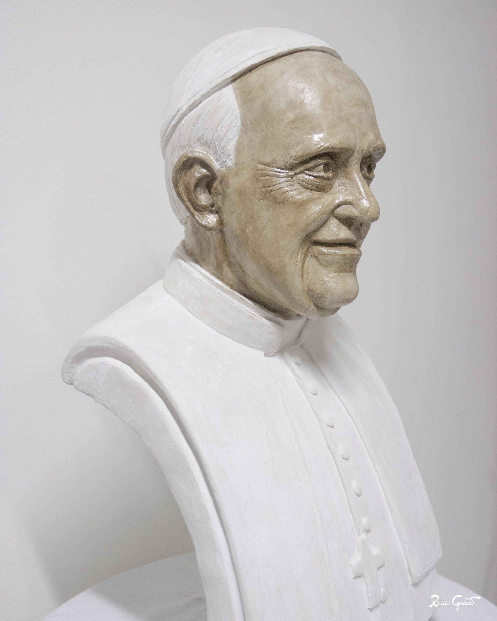 "ALMARTISTA" Exposição coletiva de Pintura e ESCULTURA, no Museu do ARCANO até 4 de Outubro" Busto - Papa Francisco Obra de Rui GoulartButton