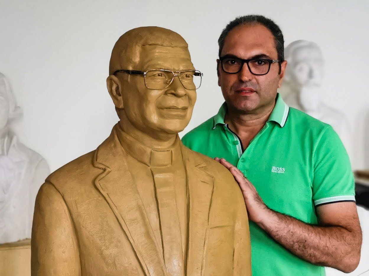 Rui Goulart, escultura com assinatura açoriana! #escultor #sculptor #bronzesculpture #art #escultura #sculpture #figurahumana #artefigurativo #portraitsculpture #sculptureoftheday #figurativeart #figurativesculptor #sculptureartist #sculpturelovers #escultoracoriano #portugueseartist #portuguesesculptor #claysculpture #monumento #monument #estatua #statue #busto #bust #claymodel #bronze #azores #DiasporaLusaButton